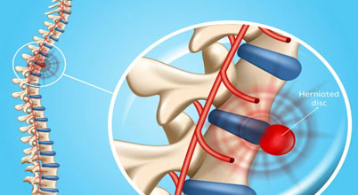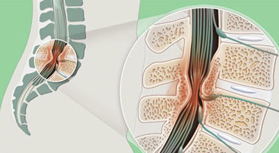 Displacement of spinal disc causing nerve compression, sharp pain, and possible numbness, needing targeted therapy or surgical intervention.